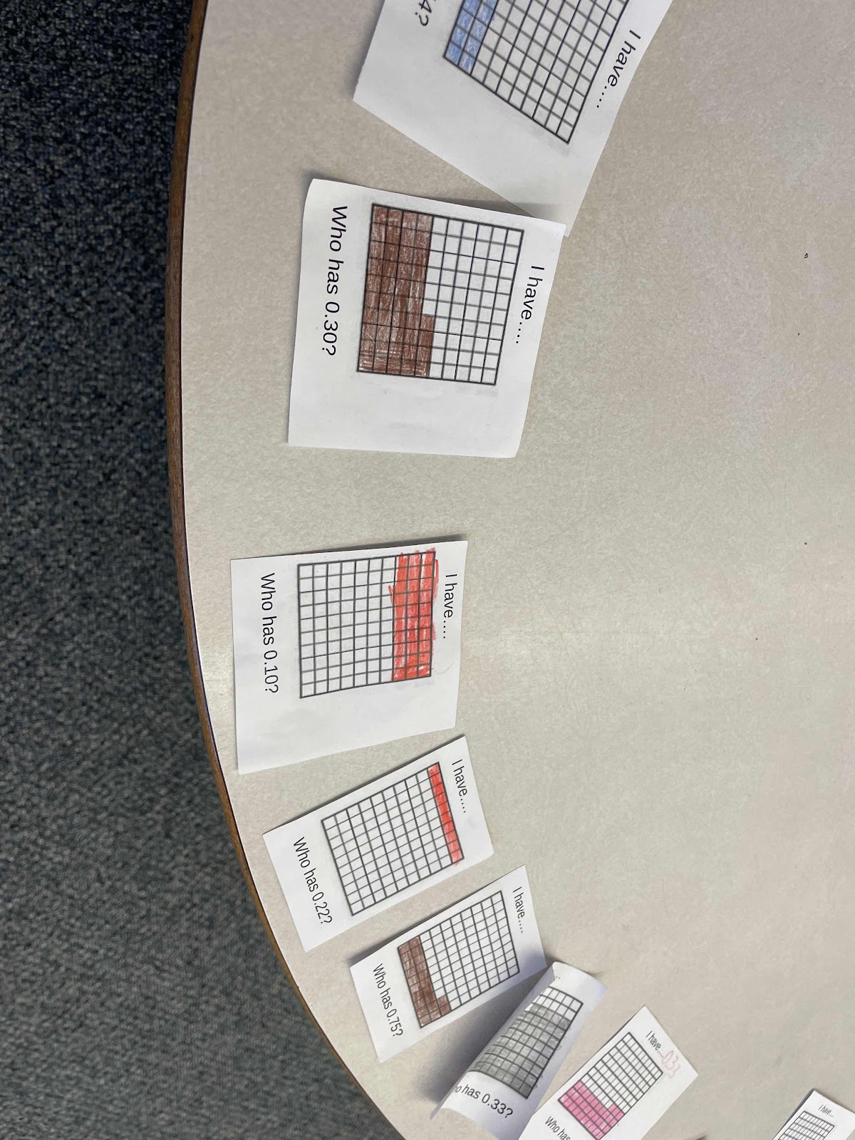 We have been exploring fractions and decimals in class. Today we did an “I have… who has?” activity.