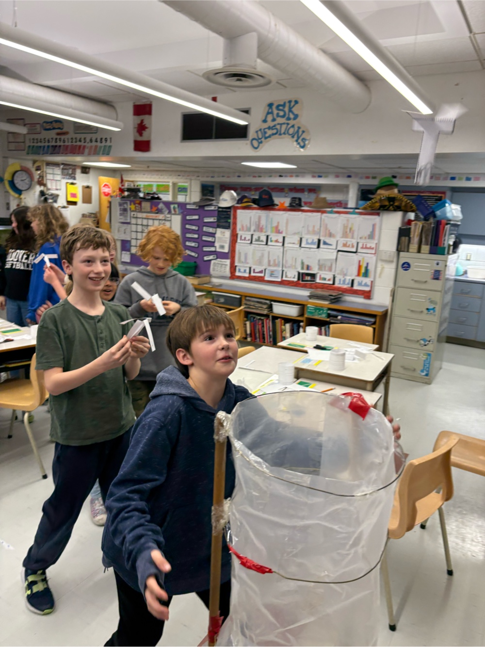 So, to help us with our exploration of the properties of air and characteristics of flight, as well as the way gases act, we built a wind tunnel, and used it to test some handmade helicopter designs. It was an exciting period of time in room 207.