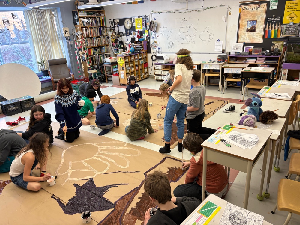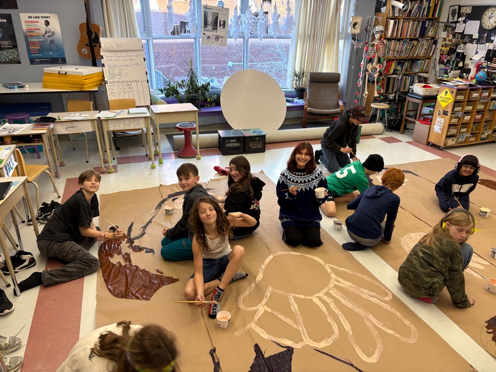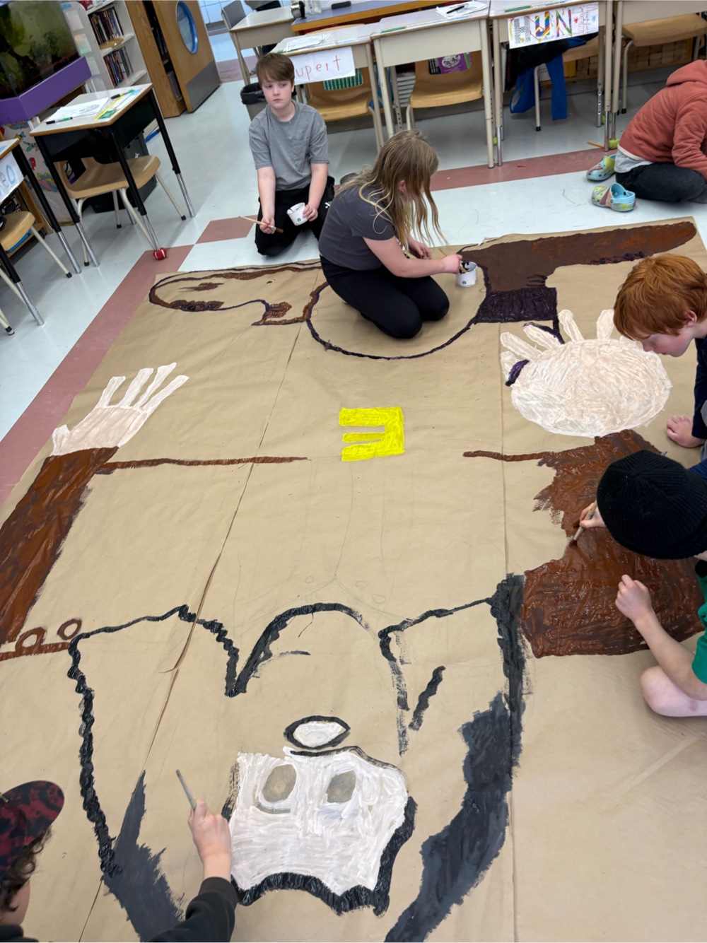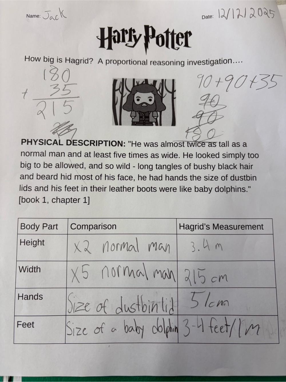 We did a proportional reasoning activity in math today… Did allow us to have a little bit of fun. We use the reading from the first Harry Potter book to figure out exactly how big Hagrid would be. We finished the day adding paint to our sketches that we came up with after we did all of our measurements.
